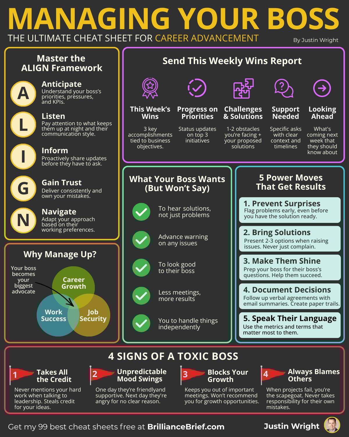 I created a cheat sheet on managing up that covers this in detail. But here are the actions that matter most for someone in your position.